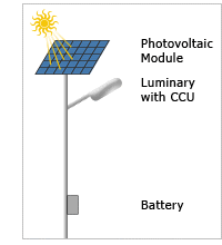 Solar street light are raised light sources which are powered by Solar Panels generally mounted on the lighting structure or integrated into the pole itself. The solar panels charge a rechargeable battery, which powers a fluorescent or LED lamp during the night. Mostly we use –