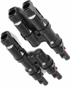 MC4 connectors are single-contact electrical connectors commonly used for connecting solar panels. The MC in MC4 stands for the manufacturer Multi-Contact and the 4 for the 4 mm diameter contact pin. MC4s allow strings of panels to be easily constructed by pushing the connectors from adjacent panels together by hand, but require a tool to disconnect them to ensure they do not accidentally disconnect when the cables are pulled. The MC4 and compatible products are universal in the solar market today, equipping almost all solar panels.