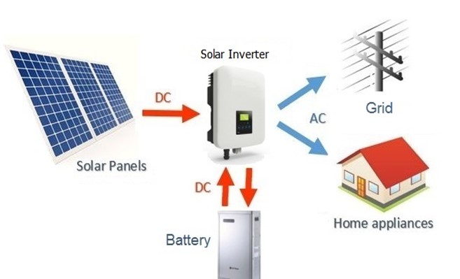 A solar inverter or PV inverter, is a type of electrical converter which converts the variable direct current (DC) output of a photovoltaic (PV) solar panel into a utility frequency alternating current (AC) that can be fed into a commercial electrical grid or used by a local, off-grid electrical network. It is a critical balance of system (BOS)–component in a photovoltaic system, allowing the use of ordinary AC-powered equipment. Solar power inverters have special functions adapted for use with photovoltaic arrays, including maximum power point tracking and anti-islanding protection.